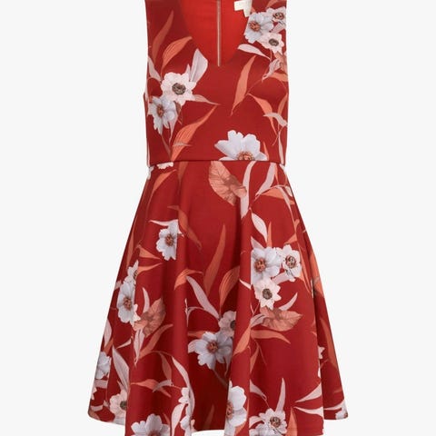 Jeg selger en helt ny og aldri brukt kjole fra Ted Baker. Den er flerfarget i beige, hvit og sort mønster. Den er i størrelse 1 dvs small, men passer også 38. Stoffet er i viskose, litt tung og nydelig stoff. Den har splitter i sidene, og er litt leger bak, som kan legges opp/klippes av dersom ønskelig. Den har lommer i sidene og belte. Skjult knappestøper til midjen. Nydelige mansjetter og legg på ermene/skuldrene som har en liten puff-effekt.