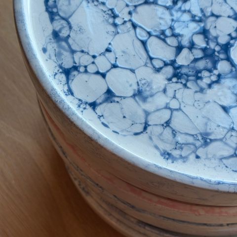 Svært pent brukt mugge fra Yellow and drew med blått mønster.