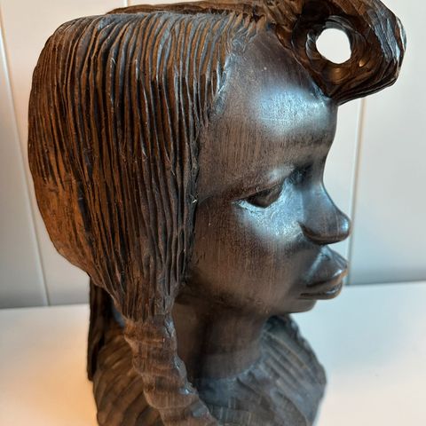 Gammel figur skåret ut av ibenholt tre. Meget pent håndtverk. Høyde ca 40,5 cm. Må ikke forveksles med moderne støpte figurer.