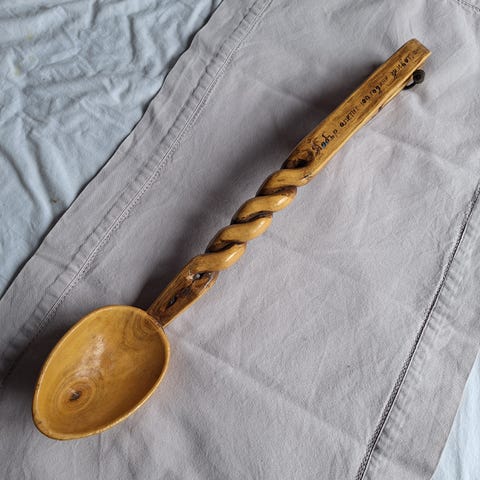 Meget pen tresleiv med treskjæring. Lengde ca 26 cm.