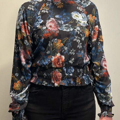 Fin bluse til jobb eller selskap. Fin med dongeri, svart og marineblått.