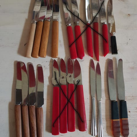 6 stk. Vintage fruktkniver med perlemorfargede skaft. 200,-