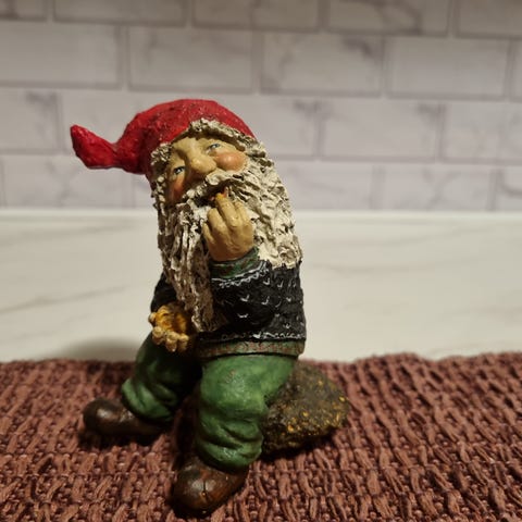 Søt liten nisse, som kan sitte på en kant, selges. Muligens Hedlund-nisse, men ikke helt sikker. Noe bruksmerker/slitasje kan forekomme. Selges som den er. Se bilder.