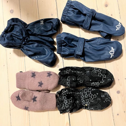Lite brukte votter til baby str 0-1 år. Vann- og vindtette. Uten tommel