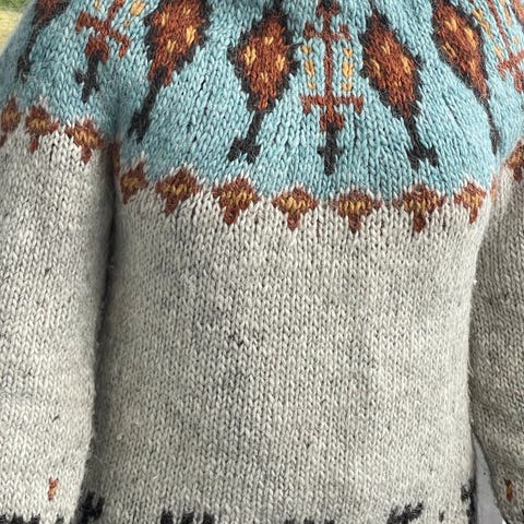 • Hjemmestrikket votter og sitteunderlag
