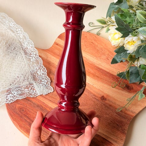 2 vintage keramikk lysestaker i nydelig rødfarge.