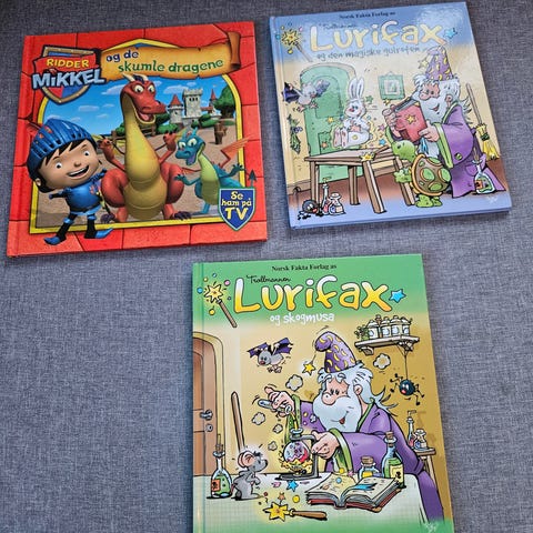 Bokpakke med tre bøker som vist på bilder. Ridder Mikkel, Albert Åberg og Monster universitetet. Veldig pent lest, og fremstår nærmest nye.
