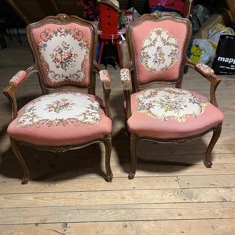 Selger 2 stoler. Brodert av mormor. 400 pr stk. kan kjøpe 1 eller 2.