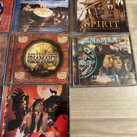 AMERICAN INDIAN DANCES består av 3 cd'er med autentiske opptak fra bl.a Apache, Navaho og Sioux-inianernes danseritualer. Tekstforklaring på dansene står på cd-omslaget. Kan sendes. Kr.150