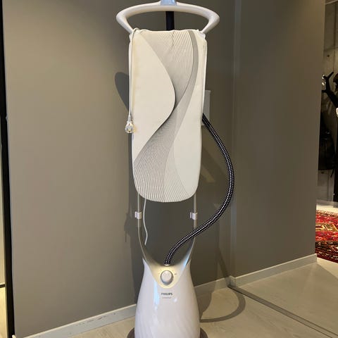 Philips "EasySpeed Plus" dampstrykejern med lilla og hvit farge. Utstyrt med damptilførsel for effektiv stryking. Passer for vanlig husholdningsbruk.