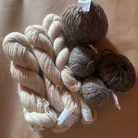 Vi driver en økologisk gård i Svartdal og her har vi også vårt eget spinneri i bygda - Telespinn! Hvert år leverer vi den nyklipte lammeulla til spinneriet som lager 2-tråds 50 grams hesper til oss. Har en del bunter av hver farge.
