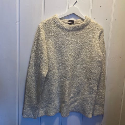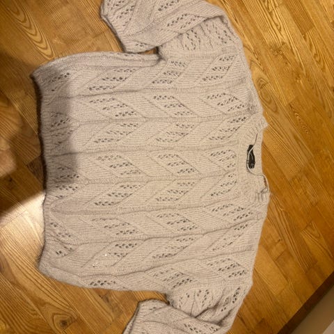 100% akryl. Står L, men passer nok fint til M også. Jeg er small og har brukt den, men den er egentlig for stor til meg.