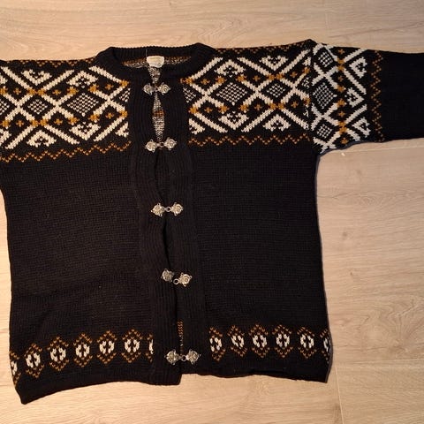(Passer akkurat, men kunne også vært litt større = preferanser). Målebåndet: Armpit to pit ca 49cm. Nakke til hem ca 68cm.