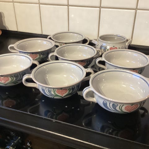 Brukt: i god stand. Små glasurmerker etter produksjonen på undersiden.