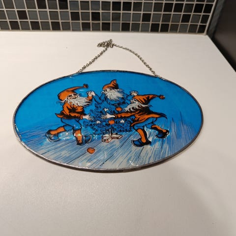 Koselig vindusbilde med julenissen. Mosaikk.