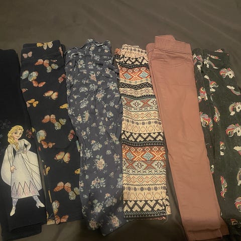 4 pent brukte bukser selges enkeltvis for 39 kr per stk eller samlet for 149 kr.