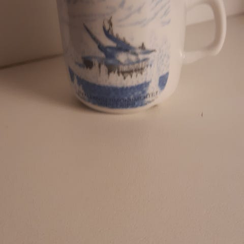 Selger en pen brukt kopp, med bilde av helgen / Nidarosdomen . Fotografert av Kjartan Hauglid.