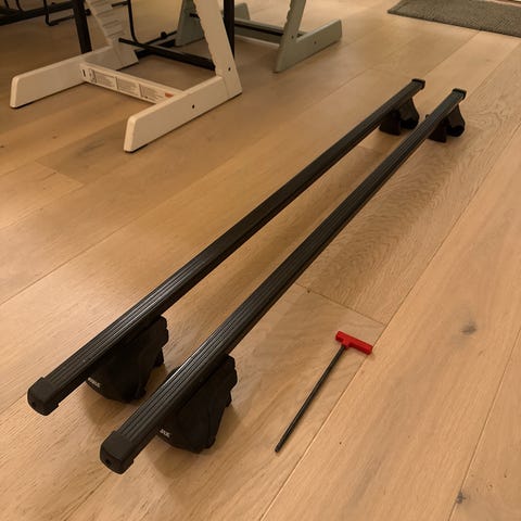 Thule takstativ selger. Aerodynamisk profil med T-spor. Har stått på en Mazda -cx5, men er justerbar i bredde så passer andre biler og.