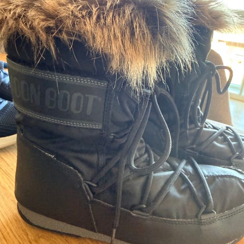 Selger mine fine svarte moon boots da de dessverre ikke blir brukt nok. De er pent brukt, det er bare litt "pilling" ytterst på tuppen, men ingen videre skader. Tror det er en utgått modell da jeg ikke fant de ved et raskt søk, men svært behagelig og lette å gå med ◡̈