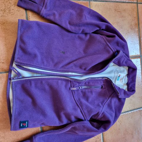 Flis jakken har et lite hull, se bilde. Ellers hel og pen.