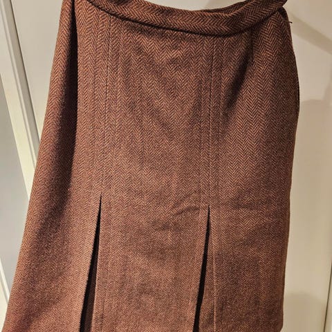 Størrelse: Merket 36, men jeg har flyttet på knappene så det passer en 40/42, M/L. Man kan fint flytte på dem igjen så skjørtet kan passe S/36 eller M/38.