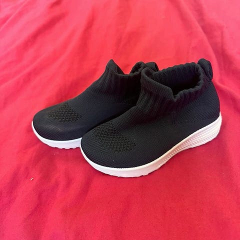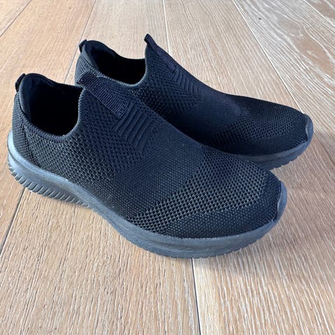 Superlette og myke støvletter for dame str 38 av mesh med glitter og myk skumsåle. Sorte