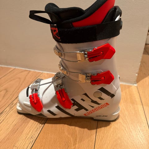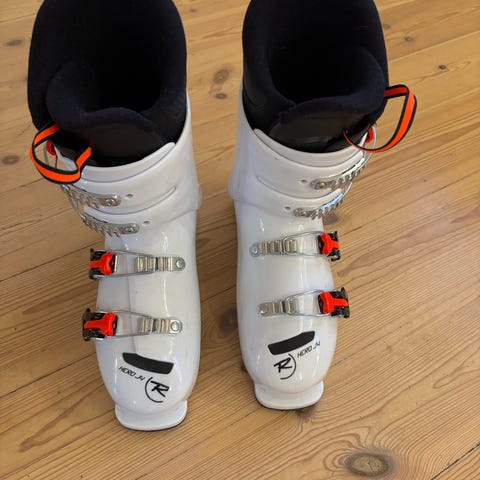 Meget gode barnestøvler fra Rossignol. Moderat bruksslitasje. 4 spenner med microjustering. Str i cm. 20,5 MP