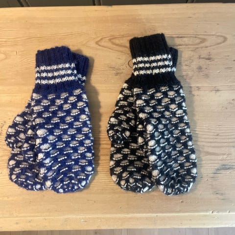 Selger 4 par votter jeg har strikket, de brune er s/m, de andre er mer small. Passer til ungdom/voksne med små hender.