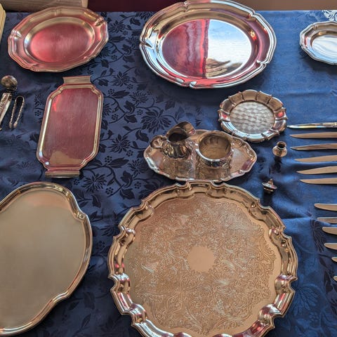 Sukker og fløtesett med fat i sølvplett