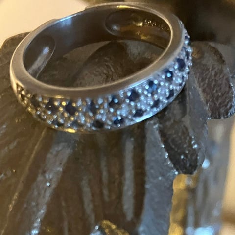 Hvitt gull, 18 karat. 16 diamanter og 16 safirer.fremstår som helt nytt. Ønsker bud over 18.000 kr.