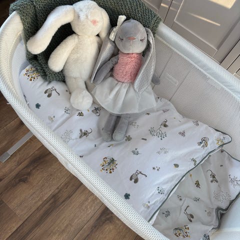 Testet og godkjent i henhold til sikkerhetsstandardene EN 1130 Møbler for barn -Spedbarnssenger og vugger. Alle materialer som kommer i kontakt med babyens hud oppfyller kravene i OEKO-TEX Standard 100, klasse 1 for babyprodukter. Dette betyr at de er snille mot babyens hud og ufarlige å smake.
