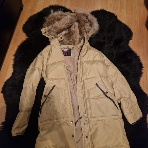 Selges billig da skinn-kantene på jakken har begynt å flasse av (bilde 4 og 5), ellers er jakken i fin stand