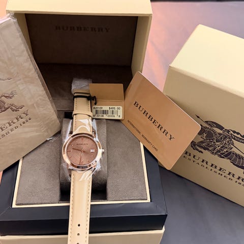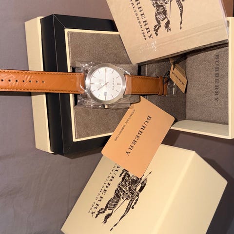 Burberry klokke selges . Må byttes batteri på. Akryl hjerter.