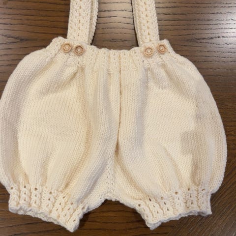 Heimestrikka romper, strikka etter oppskrift fra PetiteKnit - Lillesøsters romper.