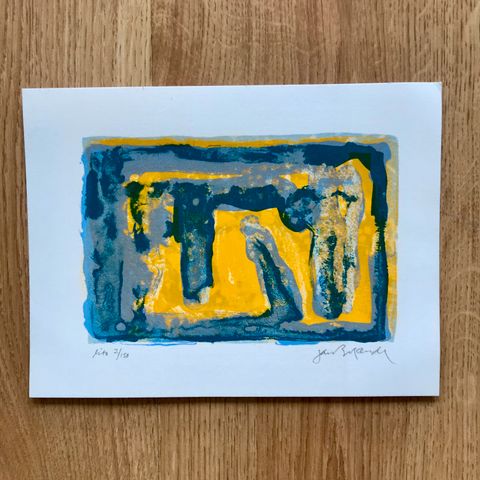Fagmessig innrammet hos List & Hempe. Med matchende ramme og refleksdempende glass. Utv. mål 64 x 50 cm.