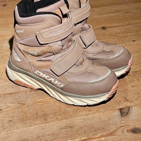 Gode, vanntette og varme støvletter str 34 selges for bare 120.- fordi dem dessverre er litt oppskrapet på tuppene etter lek ute.