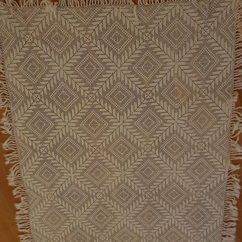Nydelig tykk håndheklet duk i bomull , str ca 110x170 .