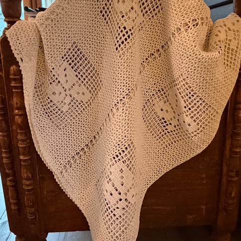 Nydelig tykk håndheklet duk i bomull , str ca 110x170