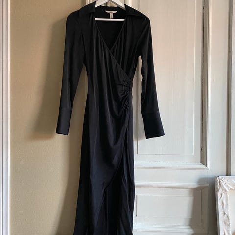 Selger en sort lang kjole med stretch i størrelse L (passer nok og xl)