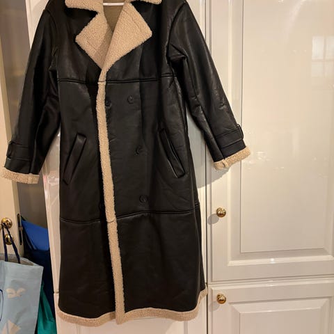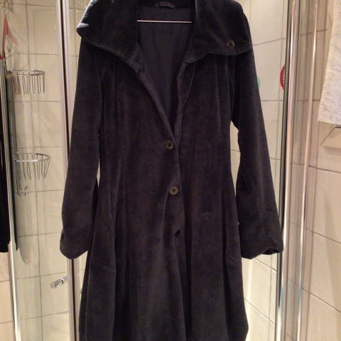 Flott kåpe i tykt sort fleece stoff. Veldig lett og behagelig. God og varm. Størrelse L. Lengde målt fra midten av skulderen 95 cm. Store gode lommer og hette. Dekorative sømmer og store knapper i fronten. Lite og pent brukt - mye bruk igjen. Ser den fremstår som grå på noen av bildene. Den er helt sort. Selges 500 kr, under halvparten av ny pris. Kan sendes med Postnord til 69 kr - sporbar og forsikret - eller annen måte som kjøper ønsker - ev. mellomstor pakke med fiksferdig.