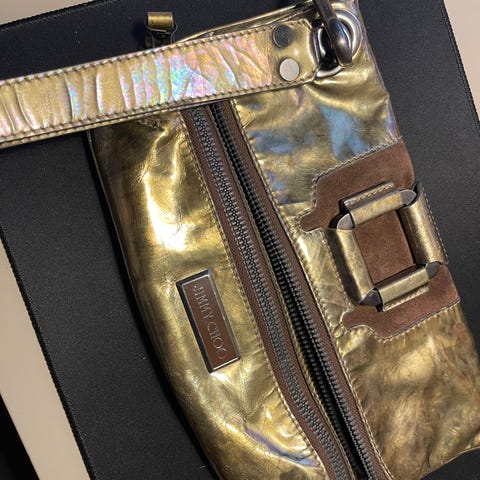Selger en superkul clutch i svart skinn fra samarbeidet mellom JIMMY CHOO og H&M. Måler 24x18x4 cm