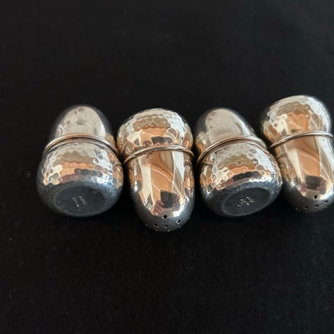 Selges samlet. STERLING SIAM MINIATURE SALT & PEPPER SET ANTIQUE MINI.