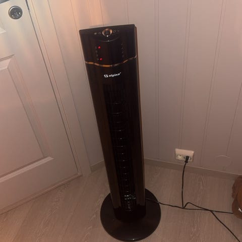 2 kW. Vifteovn, viften spinner ikke lengre, må sikkert smøres. Varmeelementene virker.