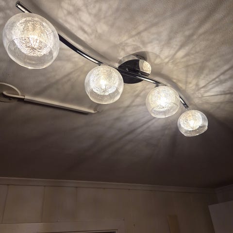 Er du på utkikk etter en stilig ny brukt lampe til jul? Lampen kommer uten stikkkontakt men med ledning. - bildene viser hvordan stemningen og pæren som settes inn endres. Diameter ca 60cm Må hentes i Søvika eller leveres på Digerneset eller Moa etter avtale. Kan sendes i posten - men da på kjøpers ansvar