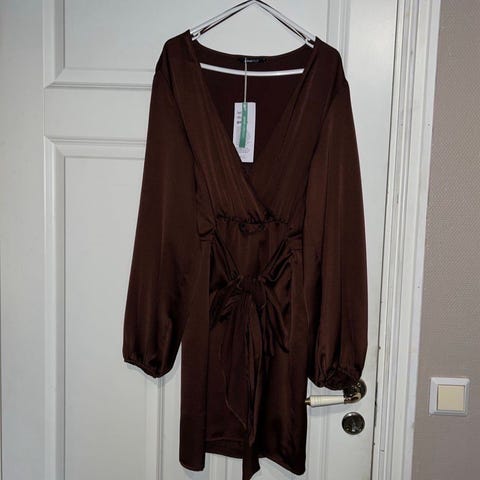 Helt ubrukt kjole i en helt nydelig grønnfarge. Elastikk i livet, og glidelås i livet.