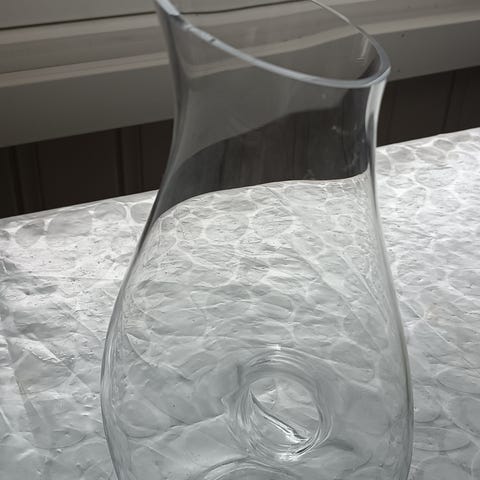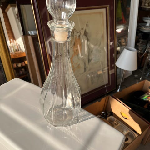 Vi har fått inn for salg en karaffel i glass Ø 11 H 30 cm.
