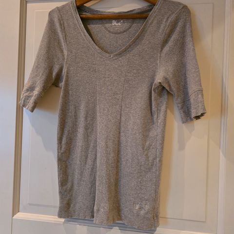Kjempefin bomullstopp med 3/4 ermer og innfelte, gjennombrutte applikasjoner på ermene. Fremstår som heklede innfellinger.