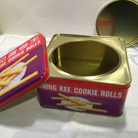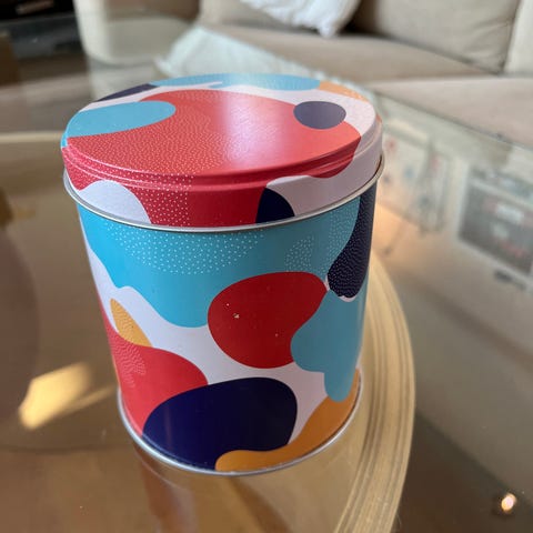 Praktisk Metallboks med tett lokk og hundemotiv, fin til småkaker og kjeks m.m.