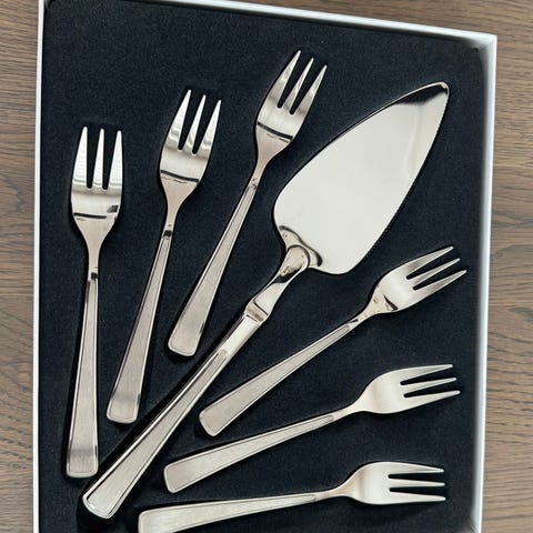 Gondolette serveringsgafler fra Klong. Utrolig elegante og perfekte som gave! Selges i 6-pakning og kommer i en stilig gaveeske.