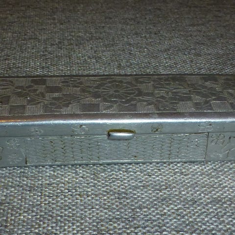 Selger denne tre boksen eska som ble laget av Russiske krigsfanger på en gård i Trøndelag 1942. 10 x 8 cm.